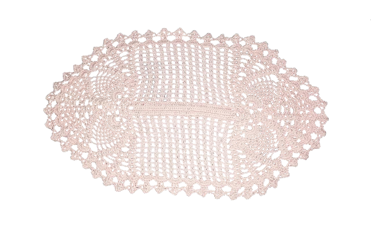 Tapete ovalado para centro de mesa elaborado totalmente a mano en color melon con hilo algodón mercerizado. Tamaño 47cm x 26cm.