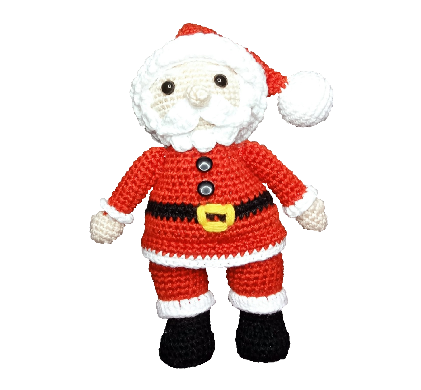 Amigurumi de Papá Noel elaborado a mano en su totalidad con hilo 100% algodón. Tiene 23cm de alto